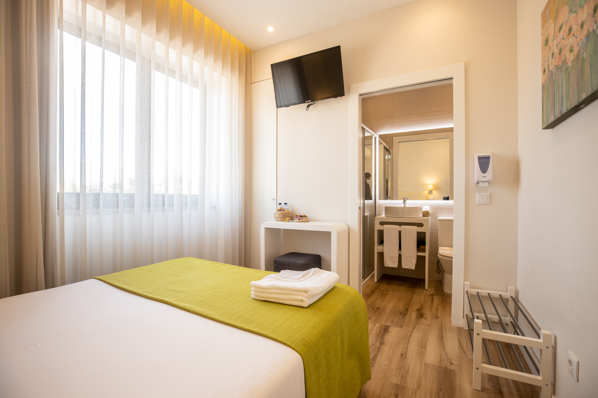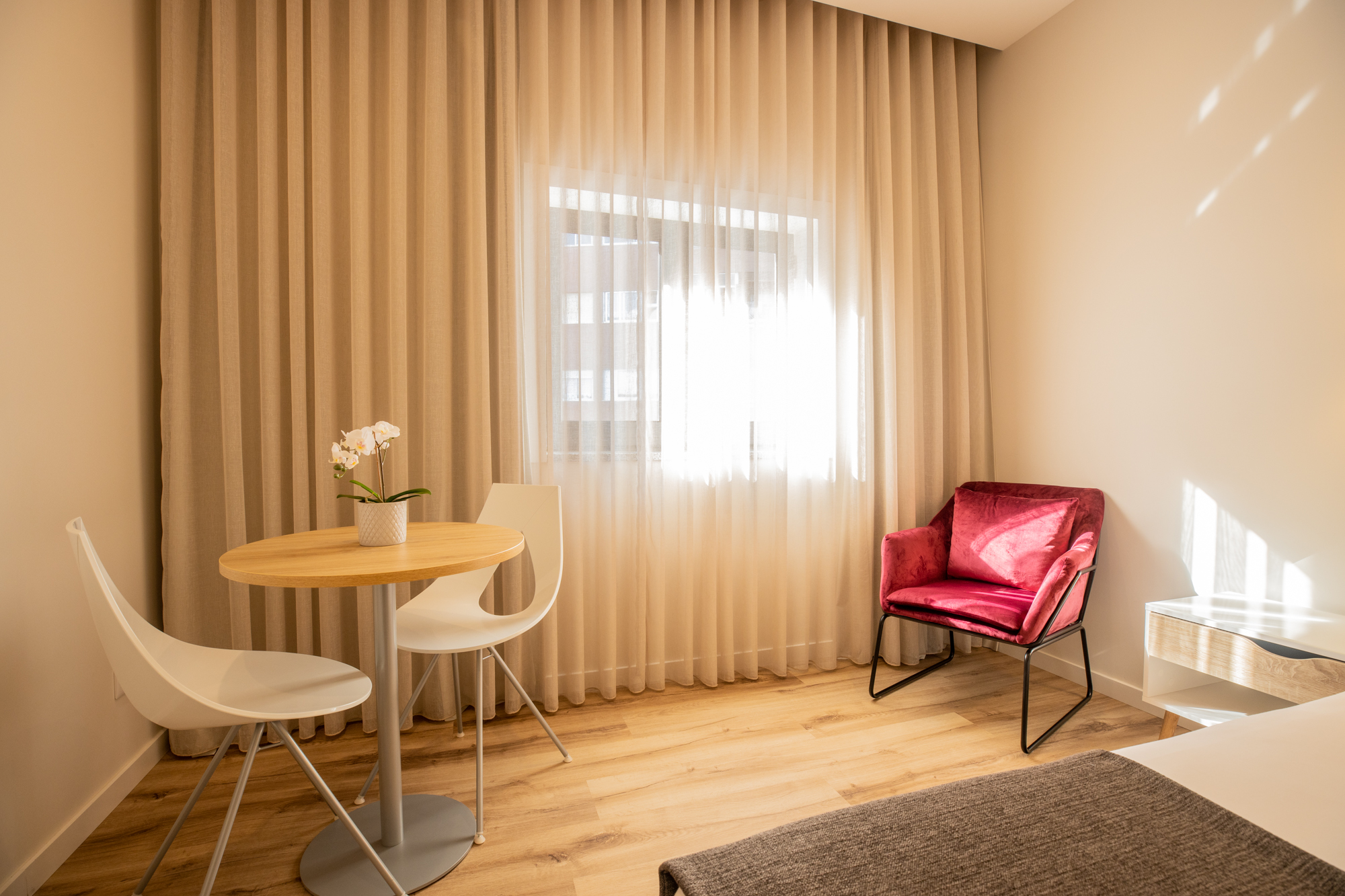 The double room is a favorite of guests at VYBE Matosinhos Centro. Overlooking the garden, the spacious and bright suites are the ideal place to relax in style.